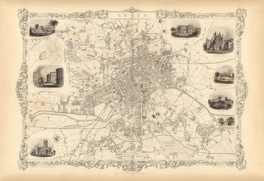 Engraved by John Rapkin and published by J. Tallis & Co in 1851, this is one of the finest and most detailed historic maps of Bristol and Clifton that you can find from the peak of industrialised Victorian Britain. There are lovely engravings adorn the edges of the map, including the Town Hall, Kirkstall Abbey, Wellington Bridge, and New Gaol.