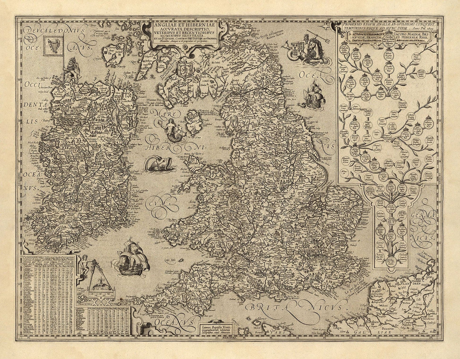 Old Map of England & Ireland in 1605 by Abraham Ortelius