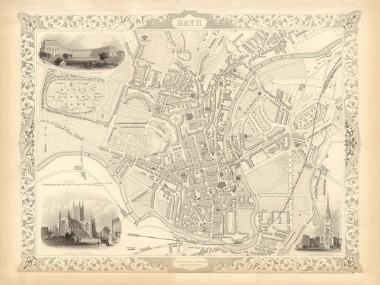Engraved by John Rapkin and published by J. Tallis & Co in 1851, this is one of the finest and most detailed historic maps of Bath that you can find from the peak of industrialised Victorian Britain.