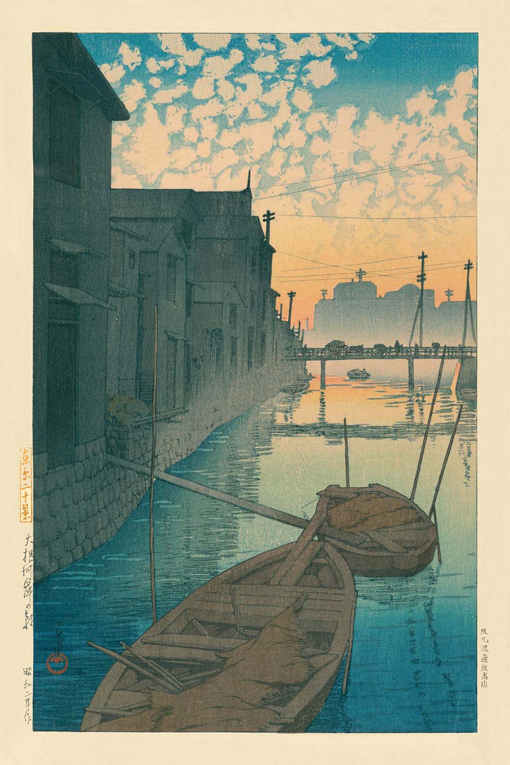Dawn at Daikon Gashi Riverbank by Hasui Kawase, 1935