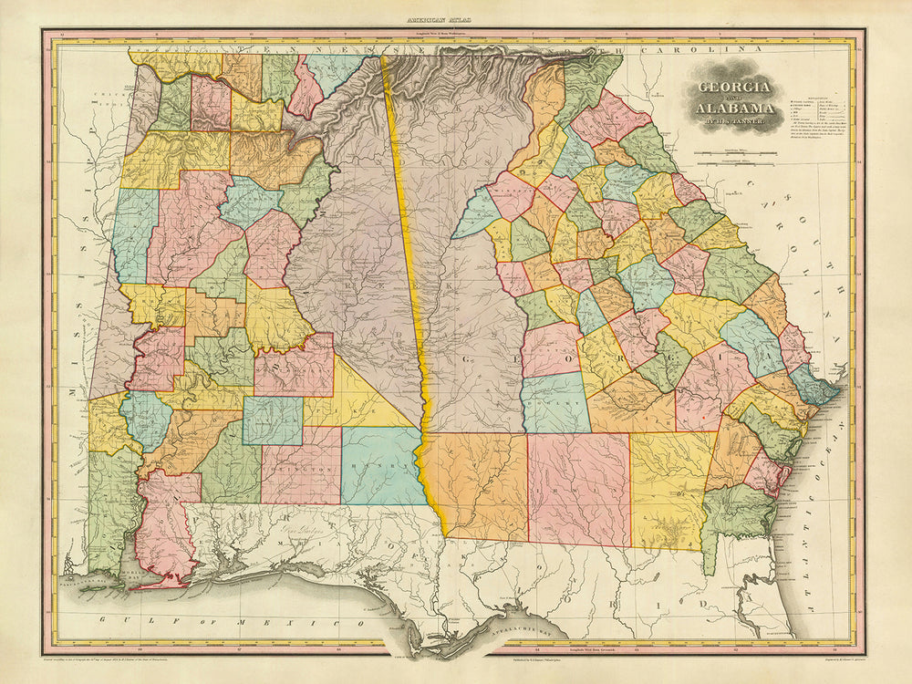 Old Map of Georgia and Alabama by H. S. Tanner, 1820: Atlanta, Savannah, Augusta, Columbus (GA), and Montgomery