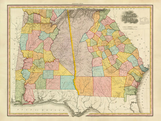 This "Old Map of Georgia and Alabama" is an extraordinary representation of Tanner's precision and craftsmanship, providing a deeply contextualized view of a pivotal time in Southern history. It's an excellent purchase for history enthusiasts, map collectors, and Southern culture aficionados alike.