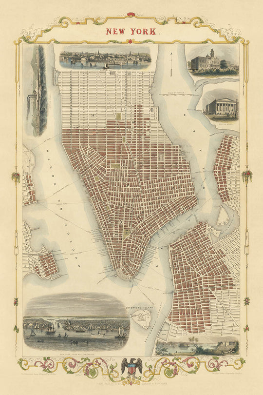 This 1851 map of New York City, published by Tallis & Rapkin, is a remarkable example of cartographic artistry and historical documentation. It captures the essence of the city during a period of rapid growth and transformation, offering a glimpse into the urban landscape of the mid-19th century.