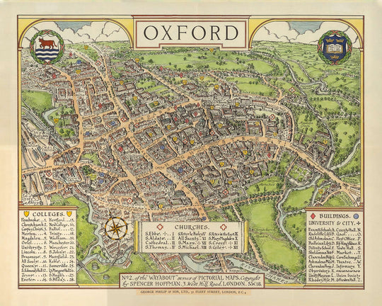 Old Oxford pictorial map by Spencer Hoffman, 1929: University and Colleges