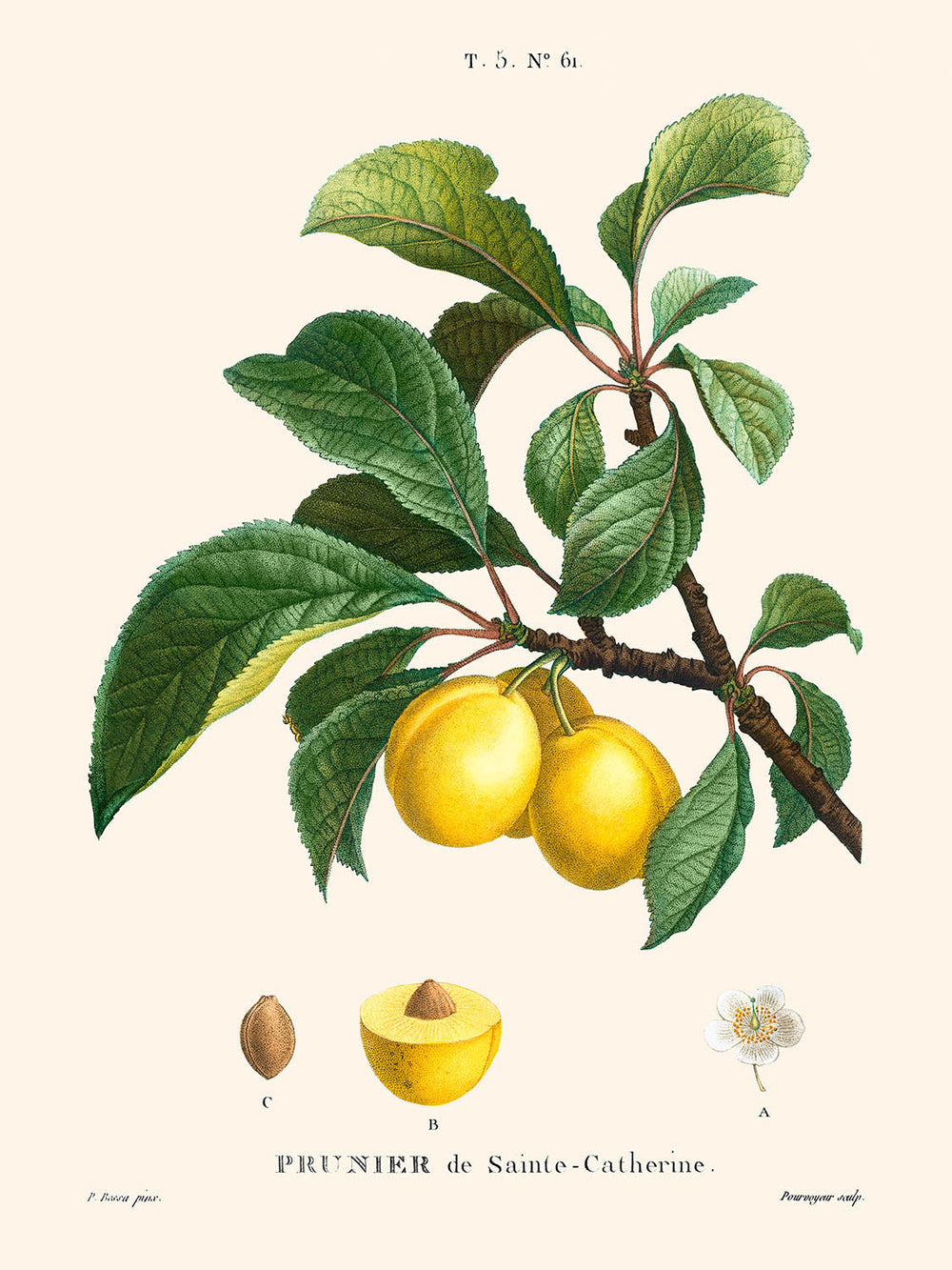 Plum Botanical Illustration by Pierre-Joseph Redouté, 1827