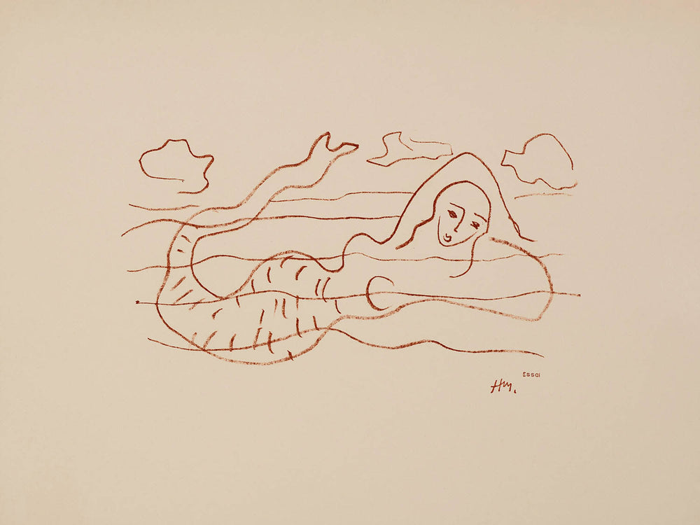 "Sirènes" stands as a testament to Matisse's supremacy as a colorist and his fascination with the natural world, simultaneously bringing mythical sirens to life against a backdrop imbued with a dreamy interplay of beige, brown, and hints of coastal hues. The painting's elegantly flowing lines and harmonious use of color exemplify Matisse's unique artistry and draw viewers into an enchanting narrative.