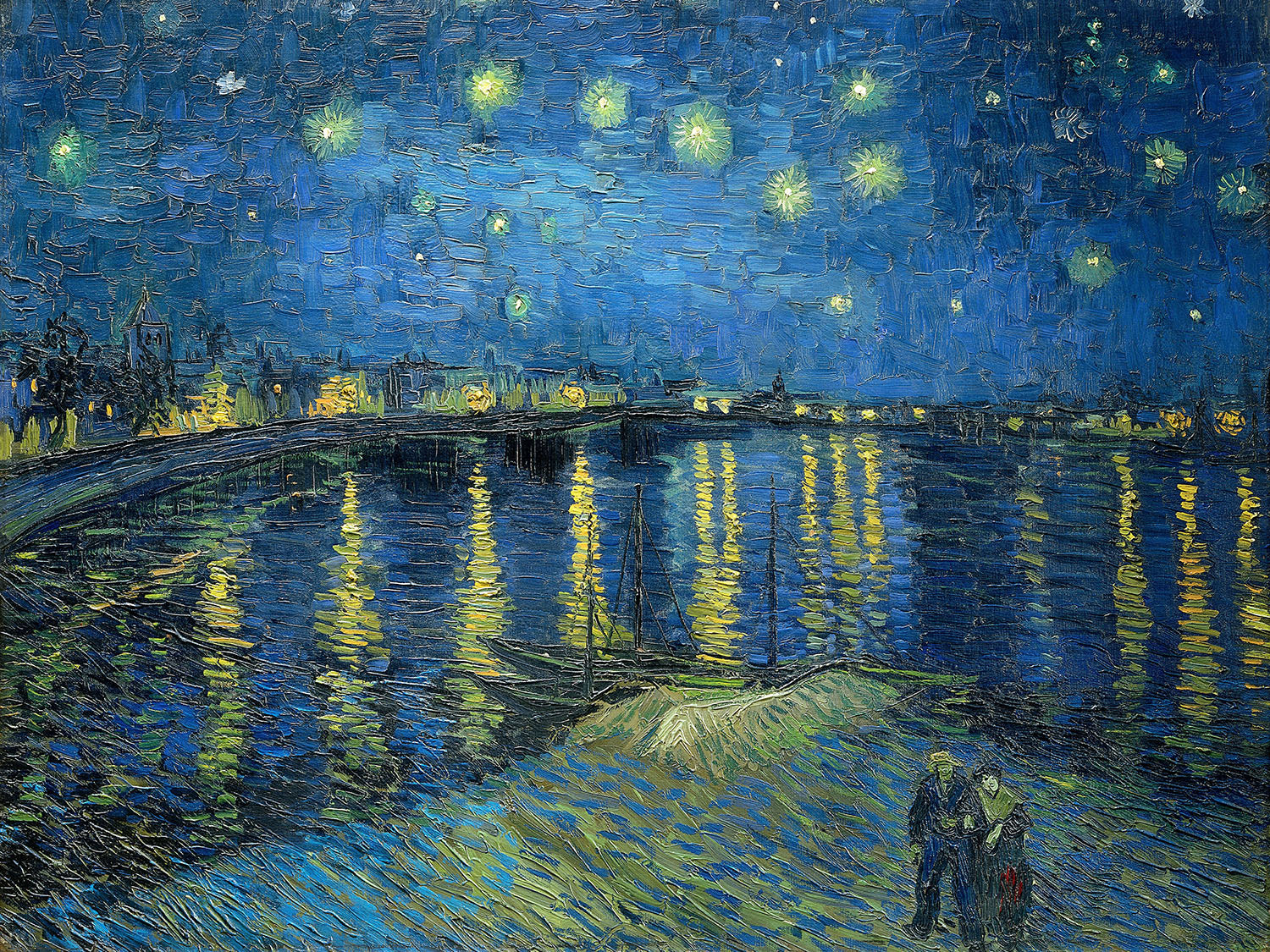 "Starry Night over the Rhone" by Vincent van Gogh, created in 1888, is one of the most captivating and serene masterpieces by the renowned post-impressionist artist. This painting wonderfully captures the tranquil beauty of the night sky over the Rhone River in the French town of Arles, where van Gogh resided for a significant period.
