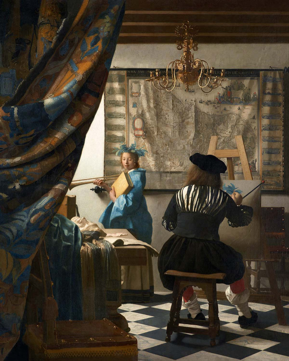 "The Allegory of Painting" stands out not just for its technical brilliance but also for its allegorical richness. Often interpreted as a profound reflection on the act of painting itself, the piece delves into themes of artistic creation and reality. The interplay of color and shadow in Vermeer's palette breathes life into the scene, inviting viewers to linger over its mystery and majesty.