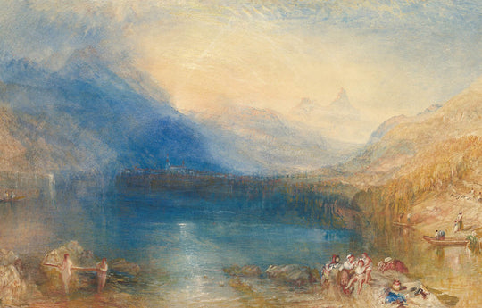 Joseph Mallord William Turner, known simply as Turner, is widely celebrated as one of Britain's most influential landscape painters. Active during the Romantic era, Turner is renowned for his innovative approach to depicting light, color, and atmosphere, qualities that have earned him a lasting legacy in the history of art. "The Lake of Zug" represents a prime example of Turner's late works, characterized by an increasingly loose, expressive style that foreshadowed the Impressionist movement.