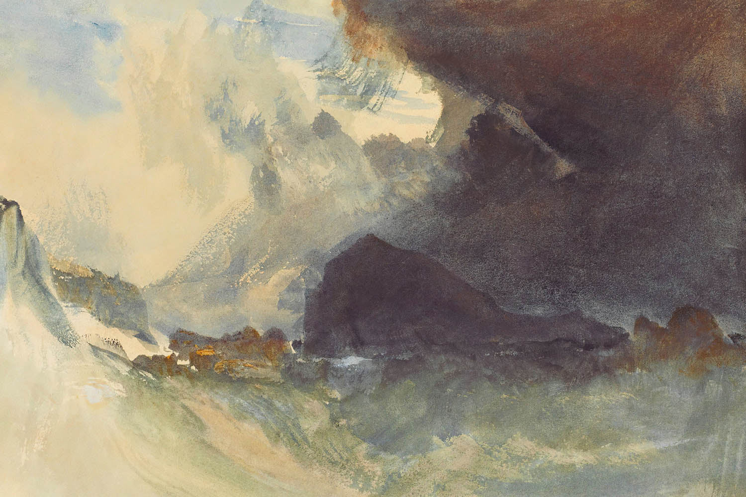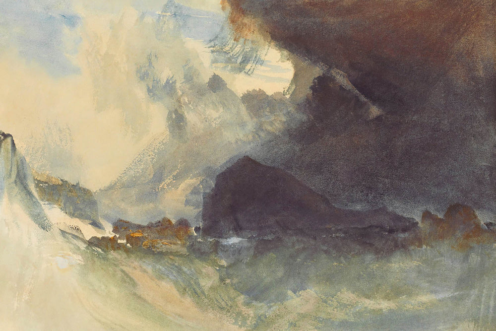 Turner's oeuvre is notable for its revolutionary approach to capturing light and atmosphere, with "The Mewstone, Devon" standing as a testament to his innovative style. His pioneering work laid the groundwork for the Impressionist movement, and his ability to evoke emotion through layered textures and dynamic forms remains unparalleled. The painting's interplay of color, featuring dominant purples, vibrant yellows, and soothing blues, creates a sense of dramatic tranquility—an embodiment of nature's unpredictable beauty and power.