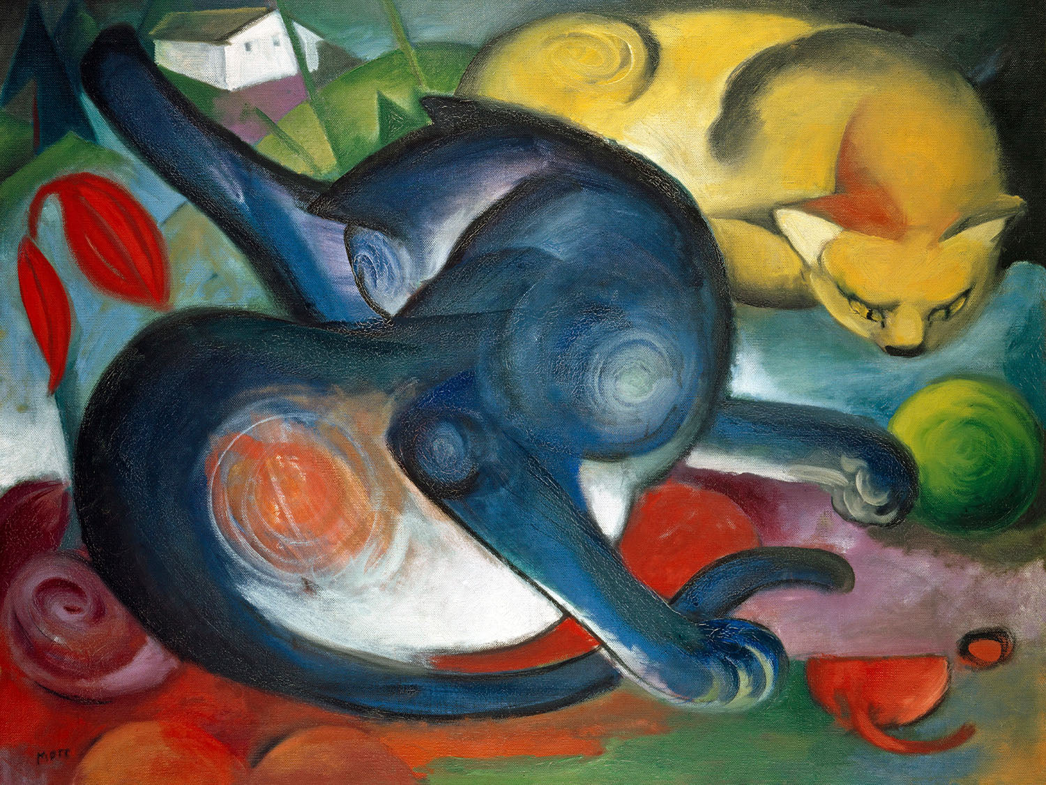 Two Cats, Blue & Yellow by Franz Marc, 1912