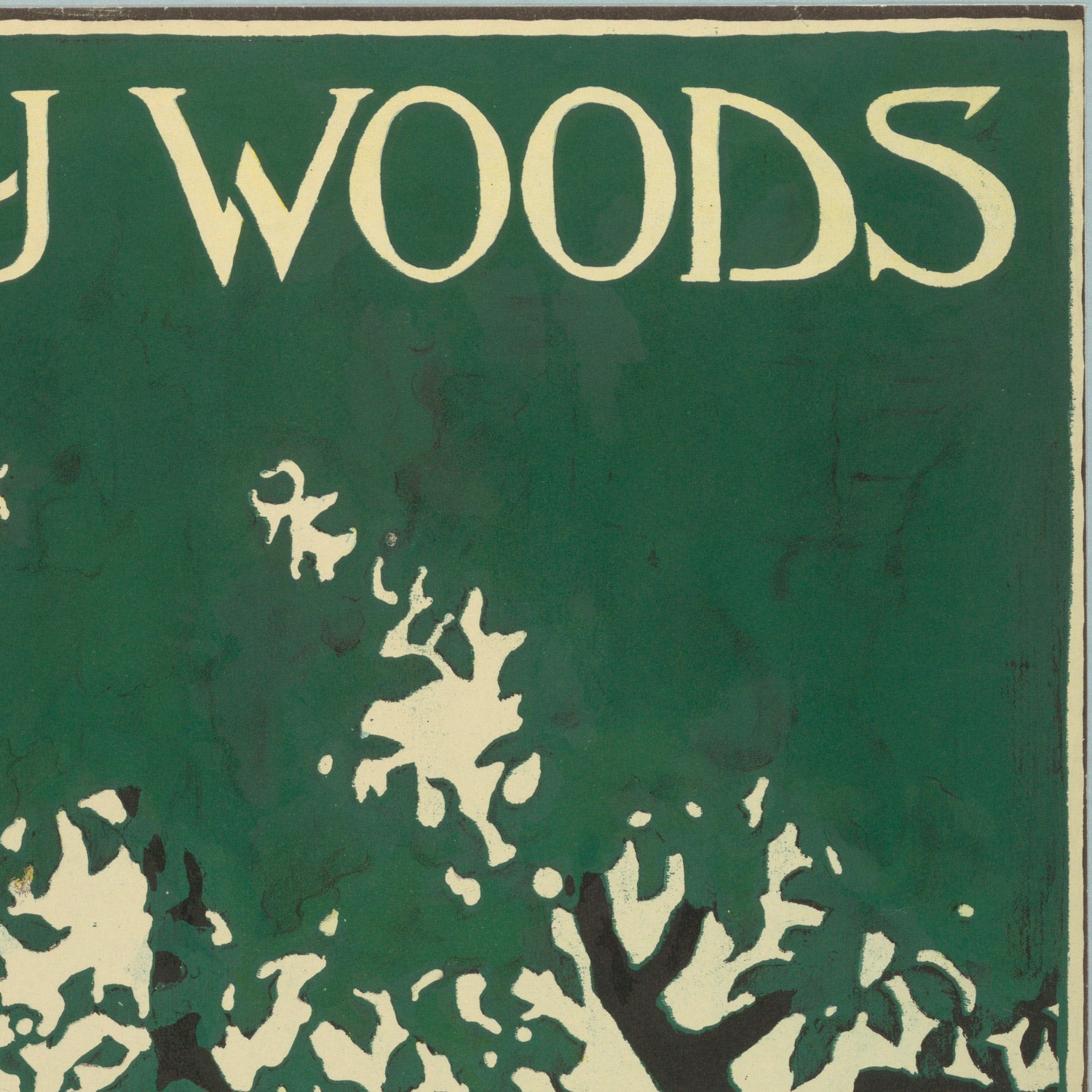 Visually, the poster leans into Art Nouveau’s organic curves and bold, summarizing contours. A palette led by vibrant greens, lifted by shafts of yellow and grounded with warm browns, creates a rhythmic pattern of trunks, branches, and clearings. Smooth, flat areas of color sit against subtly textured bark and foliage, while confident outlines simplify the forms into a harmonious composition. Clever use of negative space balances canopy and sky, giving the scene an airy, inviting quality that still reads instantly from across a room—exactly what great poster design should do.
