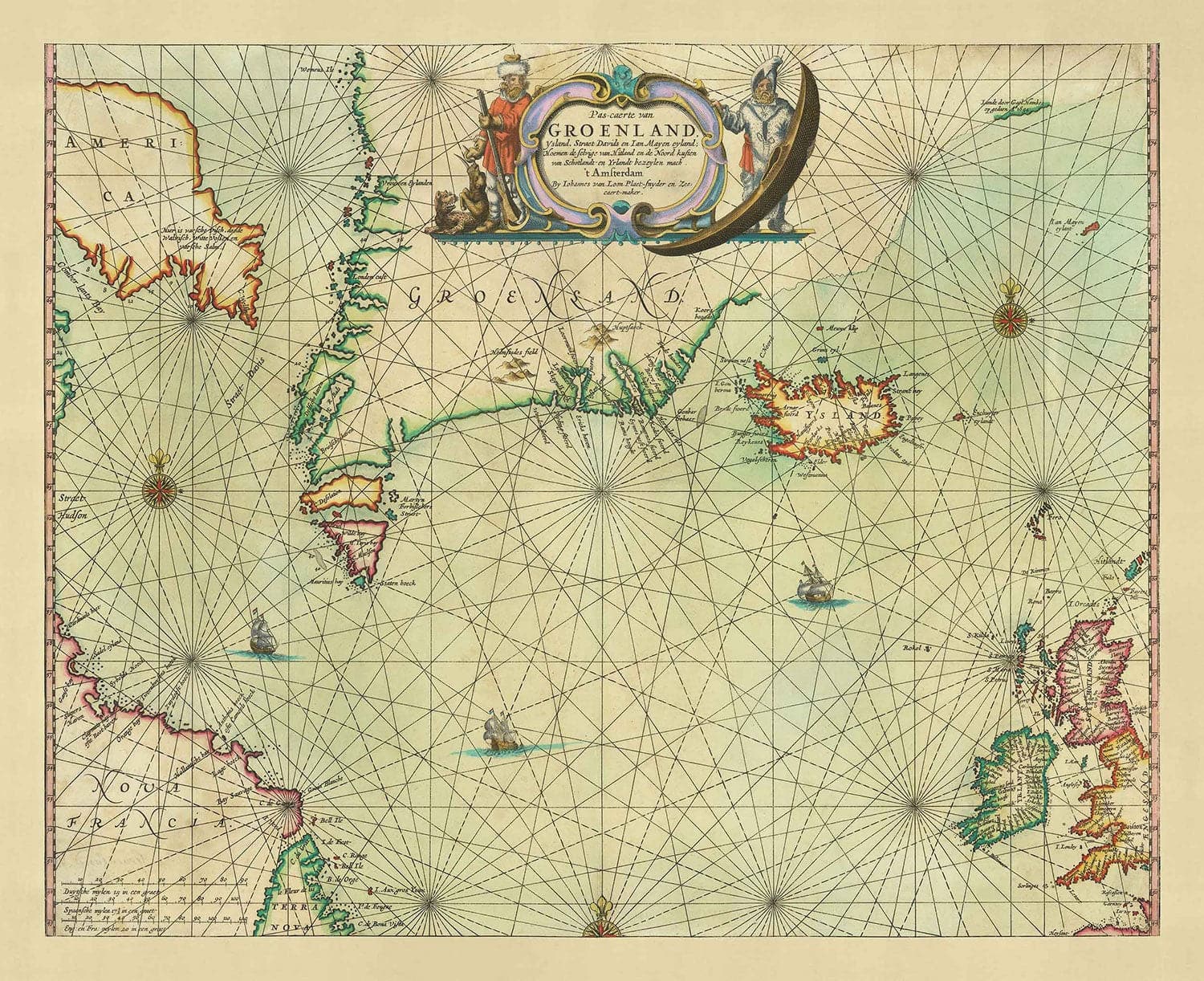 Old Map of Greenland, Iceland & North Sea, 1661 by van Loon: Viking Exploration Chart