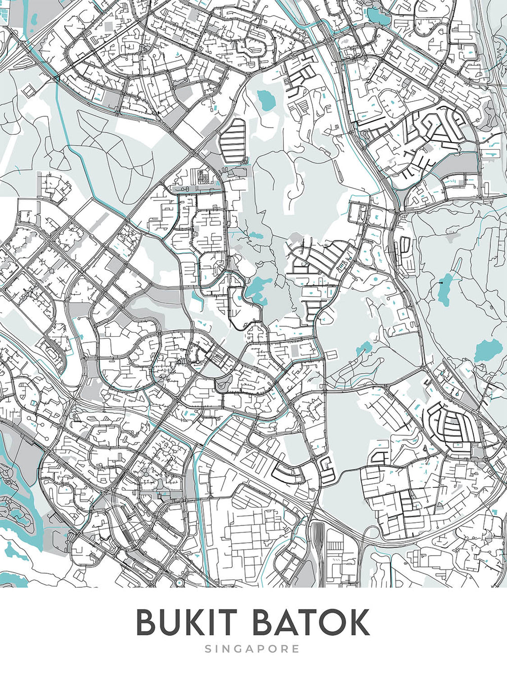 Zusammenfassend ist diese Karte ein Zeugnis für die Schönheit von Bukit Batok und die Kunstfertigkeit moderner Kartografie. Sie übersteigt die traditionelle Funktion einer Karte zur Navigation und entwickelt sich zu einem eleganten dekorativen Element, das jeden Raum bereichert. Ob im Wohnzimmer, im Büro oder im Flur aufgehängt, steht sie als subtile, aber kraftvolle Hommage an die einzigartige Landschaft von Bukit Batok und ist eine unverzichtbare Ergänzung für Sammler und Liebhaber feiner kartografischer Kunst.