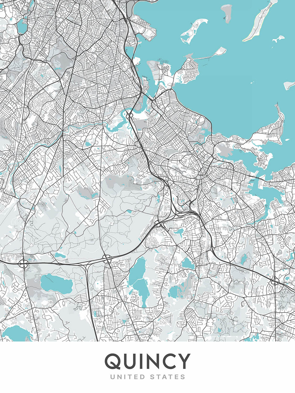 Diese Karte von Quincy, Massachusetts ist eine moderne, detaillierte Straßenkarte, die sich auf den einzigartigen Charakter und Charme der Stadt konzentriert. Die Karte konzentriert sich auf das Stadtzentrum und erstreckt sich etwa 9 Meilen nördlich des Mittelpunkts und 9 Meilen südlich des Mittelpunkts. Die Karte erstreckt sich etwa 7,5 Meilen westlich des Mittelpunkts und 7,5 Meilen östlich des Mittelpunkts.