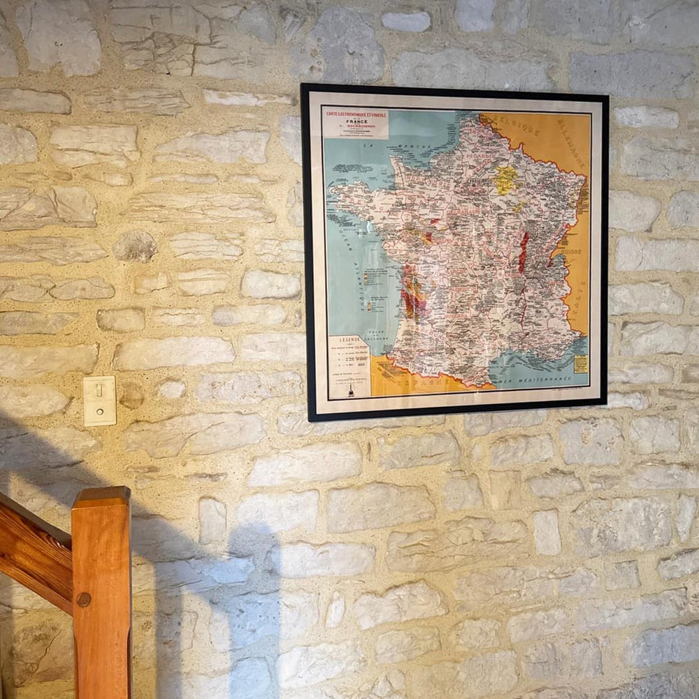 Diese wunderbare alte Karte der Gastronomie Frankreichs wurde ursprünglich 1932 veröffentlicht. Sie wurde von Alain Bourguignon erstellt.