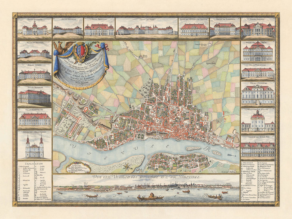 • Die bedeutendste Karte und Ansicht der Stadt Warschau aus dem 18. Jahrhundert.