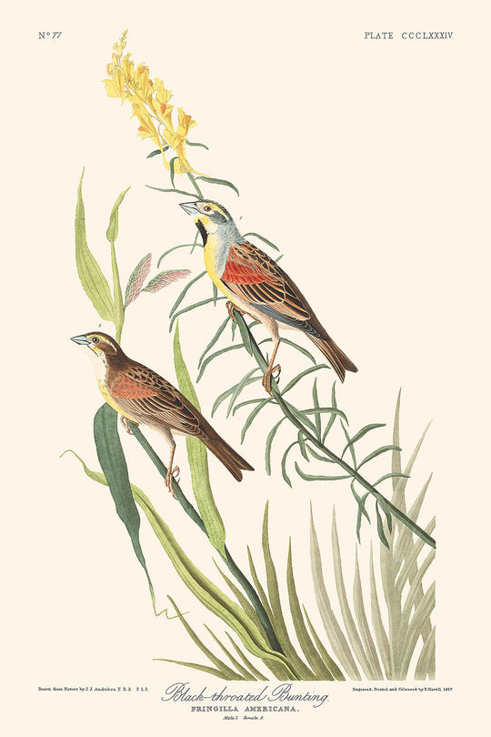 Die Illustration "Schwarzkehlchen" ist nicht nur für ihre künstlerische Qualität bemerkenswert, sondern auch für die Einblicke in die Naturgeschichte, die sie bietet. Audubons detaillierte Beobachtungen zu den Lebensräumen, Verhaltensweisen und Migrationsmustern dieser Art verleihen dem Kunstwerk eine wissenschaftliche Bedeutung. Die Komposition und der Einsatz von Farben in der Illustration heben den markanten schwarzen Hals des Vogels und die lebhaften gelben Flecken hervor und machen sie zu einer auffälligen Ergänzung für jeden Raum.