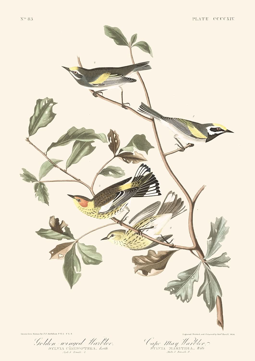 Goldflügel-Waldsänger und Kap-May-Waldsänger von Audubon, 1827