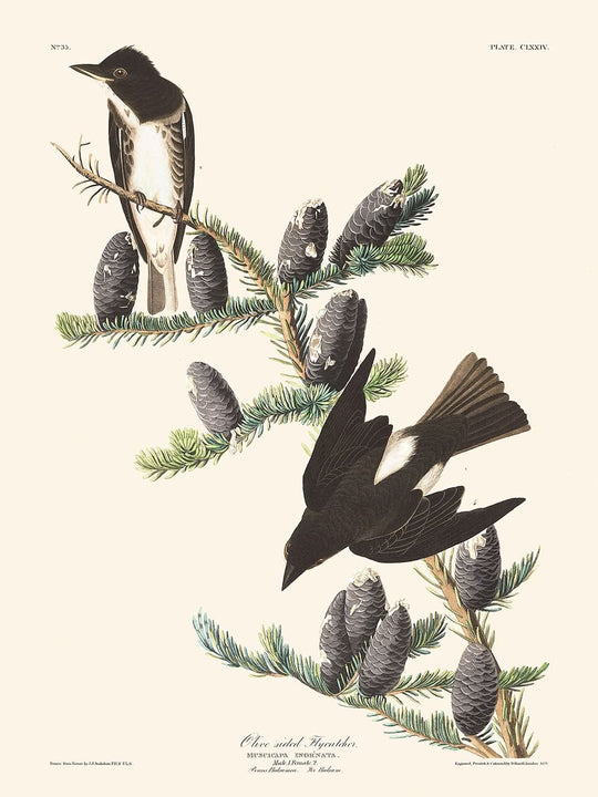 Dieses Kunstwerk ist bemerkenswert, nicht nur wegen seiner auffälligen Darstellung des Olive-sided Flycatcher, sondern auch wegen seiner historischen Bedeutung in Audubons Erkundung und Dokumentation von Vogelarten, die zu dieser Zeit in den Vereinigten Staaten unbekannt oder neu angekommen waren. Diese spezielle Illustration ist eine Darstellung der Art, wie sie von Audubon selbst beobachtet und beschrieben wurde.