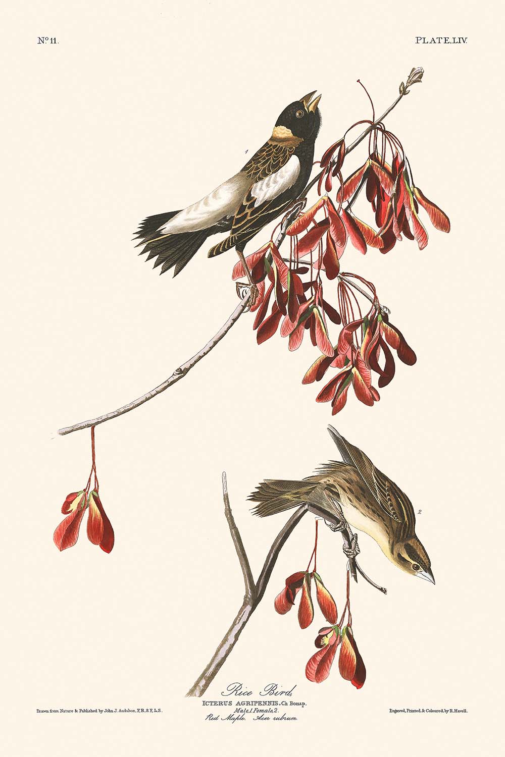 Unser Angebot von Audubons "Reisvogel"-Illustration ist als hochwertiger Kunstdruck erhältlich, gefertigt auf säurefreiem, archiviertem Papier oder Künstler-Leinwand, um Langlebigkeit und lebendige Farbtreue zu gewährleisten. Sie können aus einer Vielzahl von Größen wählen, und es gibt Optionen für Rahmen, die Ihren dekorativen Bedürfnissen entsprechen. Bei The Unique Maps Co. bieten unsere personalisierten und maßgeschneiderten Dienstleistungen Ihnen die Freiheit, Ihren Druck für einen individuellen Ausdruck Ihres Geschmacks anzupassen.