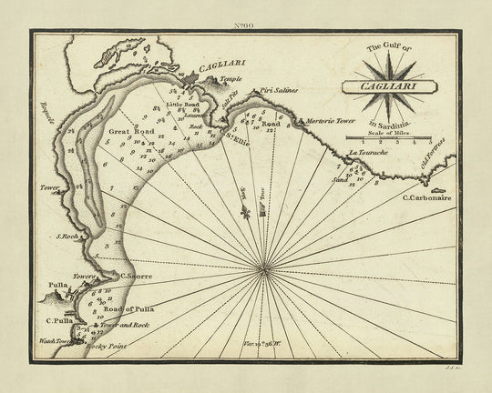 • Historische Bedeutung: Bietet eine detaillierte und genaue Darstellung des Golf von Cagliari im frühen 19. Jahrhundert, wertvoll für historische und nautische Studien.