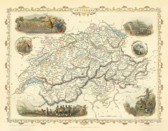 Graviert von John Rapkin und veröffentlicht von J. Tallis & Co im Jahr 1851, ist dies eine der feinsten und detailliertesten historischen Karten der Schweiz. Diese Karte wurde vor mehr als 150 Jahren ursprünglich handkoloriert und wurde von The Unique Maps Co. geschickt restauriert.