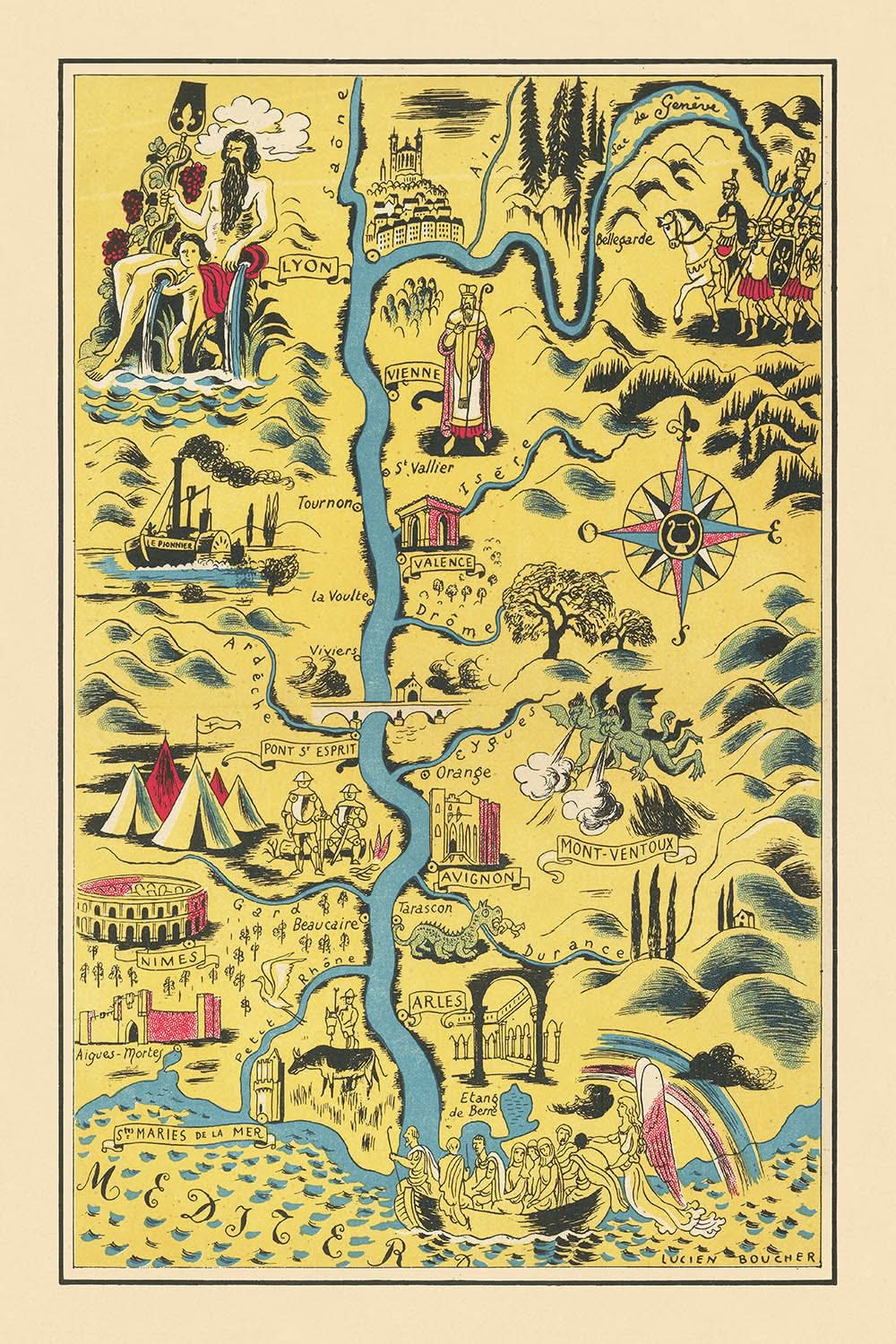 - Name der Karte: Bildliche Karte der Rhone-Region von Lucien Boucher.