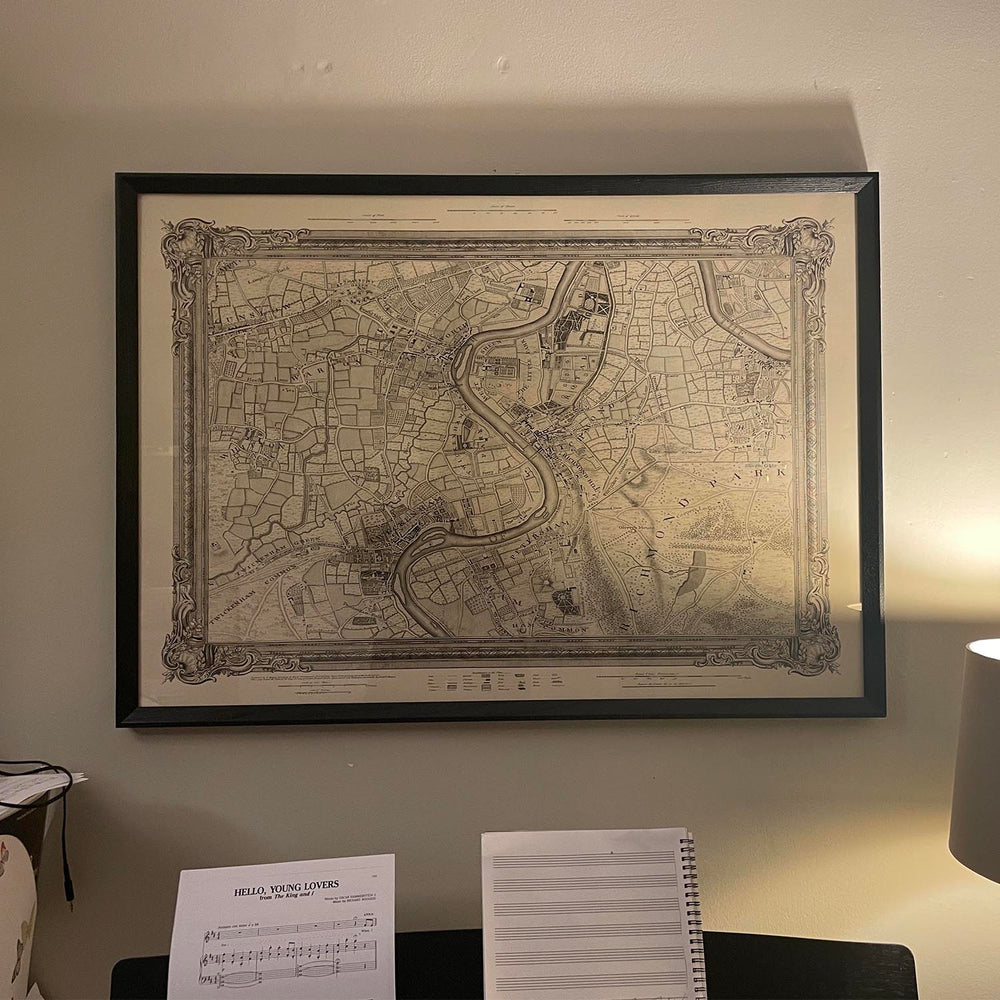Ich beziehe originale, seltene Karten aus Bibliotheken, Auktionshäusern und Privatsammlungen auf der ganzen Welt, restauriere sie in meiner Londoner Werkstatt und erstelle dann mit speziellen Giclée-Tinten und -Druckern wunderschöne Karten, die sogar noch besser aussehen als das Original.