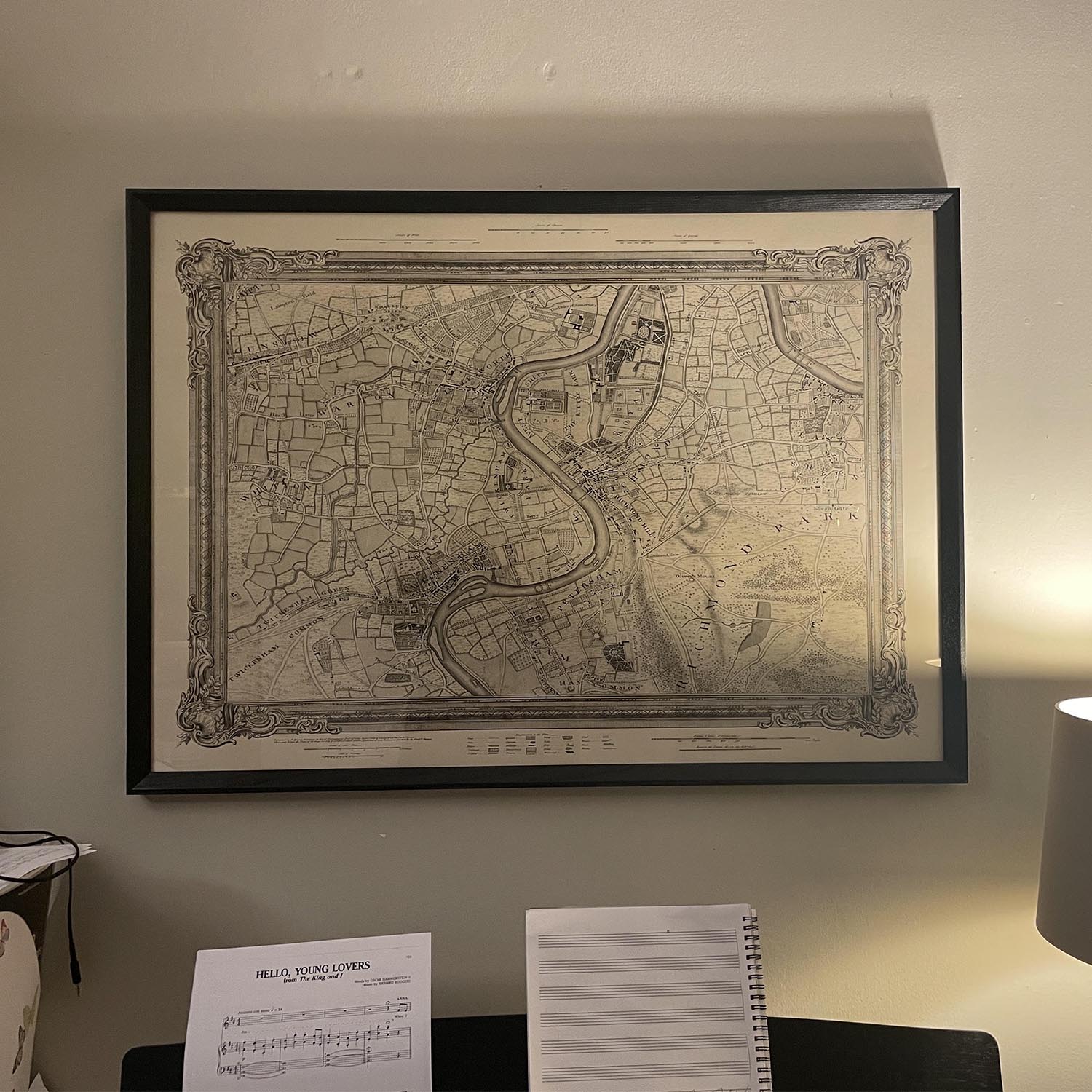 Vor fast 300 Jahren von dem Meisterkartenmacher John Rocque veröffentlicht, ist dies die erste detaillierte Karte von West-London. Sie wurde ursprünglich 1746 veröffentlicht, nach einer äußerst genauen Vermessung von London und seinen Vororten, die 1740 begann. Es ist eine wunderschöne, hochdetaillierte und äußerst seltene alte Karte.