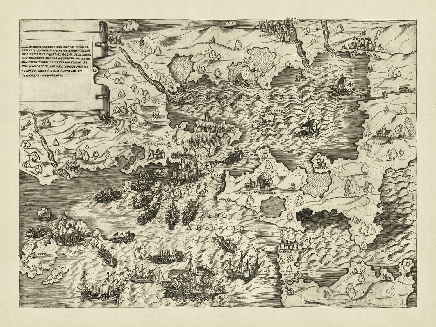 - Stellt die Schlacht von Preveza (1538) dar und verweist auf die Schlacht von Actium (31 v. Chr.).