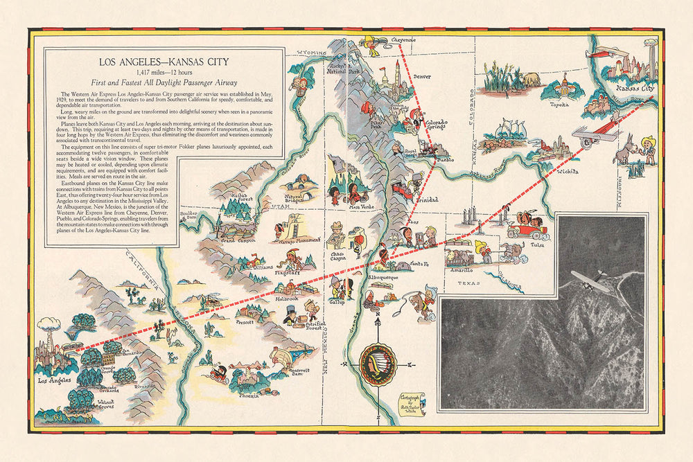 - Name der Karte: Los Angeles-Kansas City, erstellt im Rahmen eines Western Air Express Prospekts.