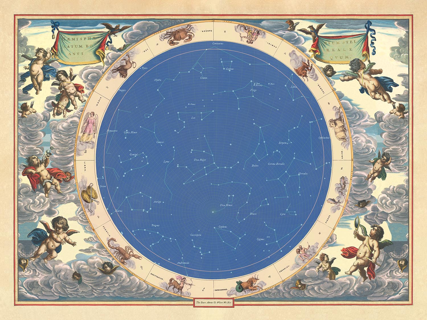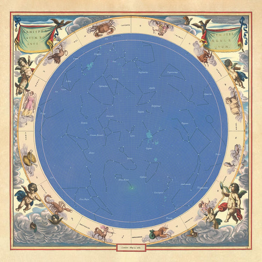 Falls Sie sich fragen: Unsere einzigartigen Sternkarten basieren auf einer echten alten Karte aus dem Jahr 1661 von Andreas Cellarius.