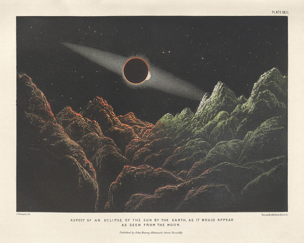 Sonnenfinsternis durch die Erde, wie sie vom Mond aus erscheinen würde von James Nasmyth, 1874