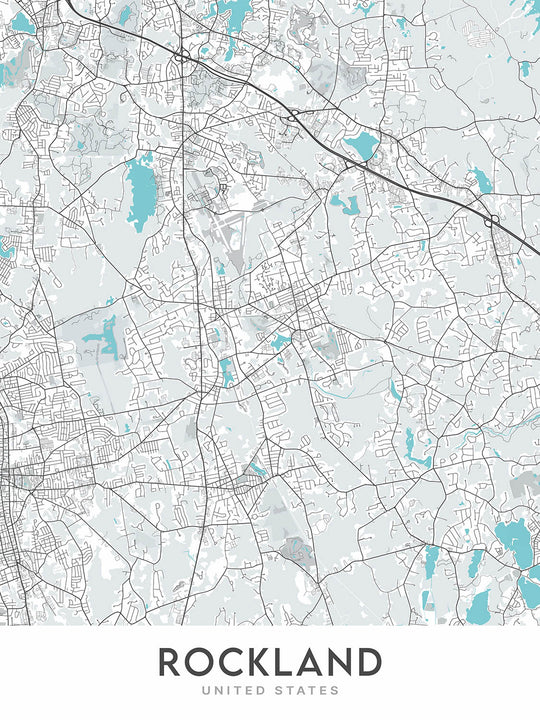 Dieser detaillierte Stadtplan von Rockland, Massachusetts, bietet einen umfassenden Überblick über die Stadtlandschaft der Stadt. Die Karte erstreckt sich etwa 9 Meilen nördlich des Stadtzentrums, 9 Meilen südlich, 7,5 Meilen östlich und 7,5 Meilen westlich und umfasst einen erheblichen Teil der Stadt und ihrer umliegenden Gebiete. Diese Karte ist eine hervorragende Ressource für Einwohner, Besucher und alle, die sich für die Erkundung der Geographie und Stadtplanung der Stadt interessieren.