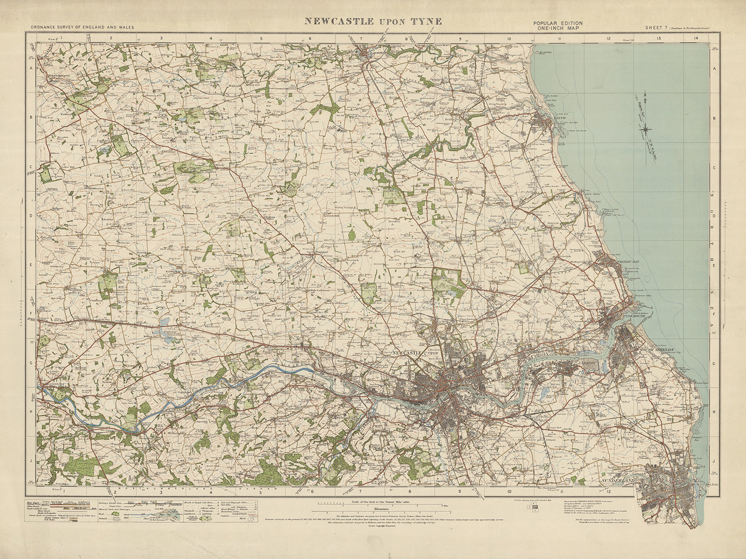 Alte Ordnance Survey-Karte, Blatt 7: Newcastle Upon Tyne, 1919-1926: Gateshead, Whitley Bay, Blaydon, Cramlington, Tyne River, Hadrianswall