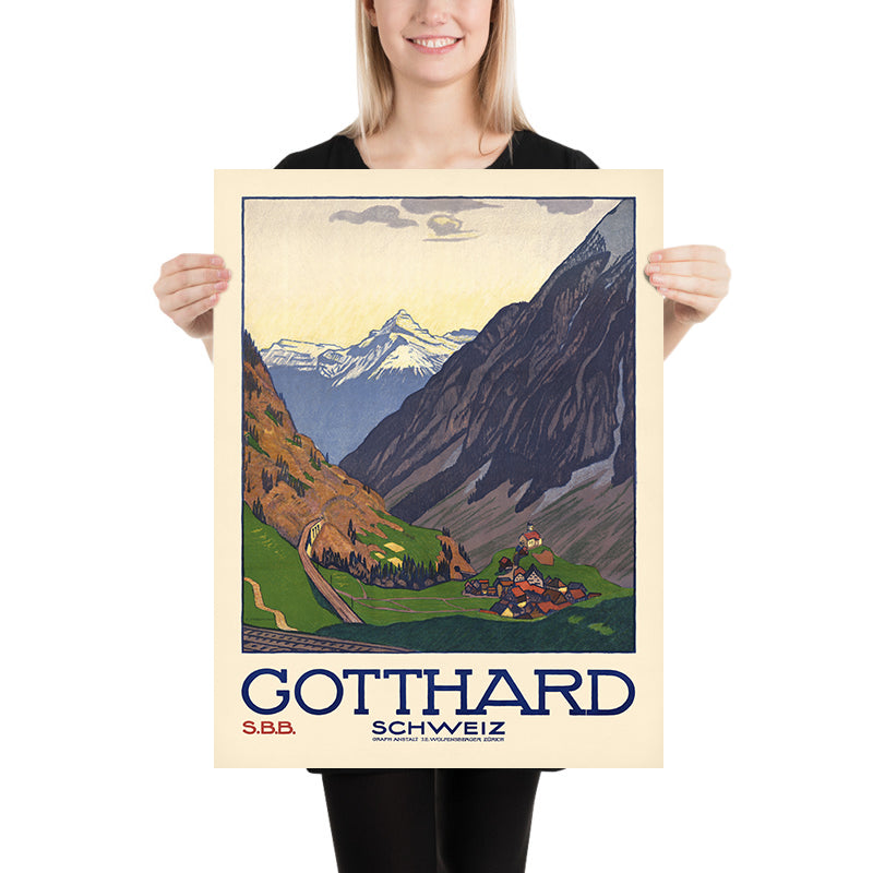 A timeless gift: This fine art print makes a thoughtful present for Christmas, Father’s Day, Mother’s Day, birthdays, housewarmings, or to celebrate a recent trip across the Gotthard or a Swiss rail adventure. Whether commemorating a honeymoon in the Alps or inspiring the next journey, “Gotthard Schweiz” brings the sweep of Switzerland’s high country—and the elegance of golden-age travel—into everyday view.