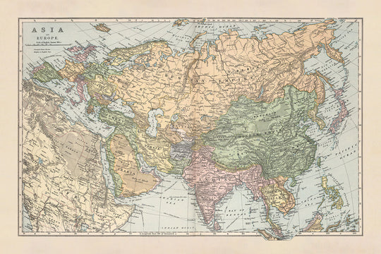 Tauchen Sie ein in die reiche Geschichte der Geschichte mit dieser exquisiten Karte von 1892 mit dem Titel „Asien & Europa“, die sorgfältig von der renommierten Firma D. Appleton & Co. gestaltet wurde. Diese Karte ist ein Zeugnis der kartografischen Kunstfertigkeit des späten 19. Jahrhunderts und bietet eine lebendige Darstellung der geopolitischen Landschaft Asiens und Europas während einer Zeit tiefgreifender Veränderungen. D. Appleton & Co., ein renommierter amerikanischer Verlag, wurde für seine Lehr- und Nachschlagewerke gefeiert, und diese Karte ist ein hervorragendes Beispiel für ihr Engagement für Präzision und Detailgenauigkeit.