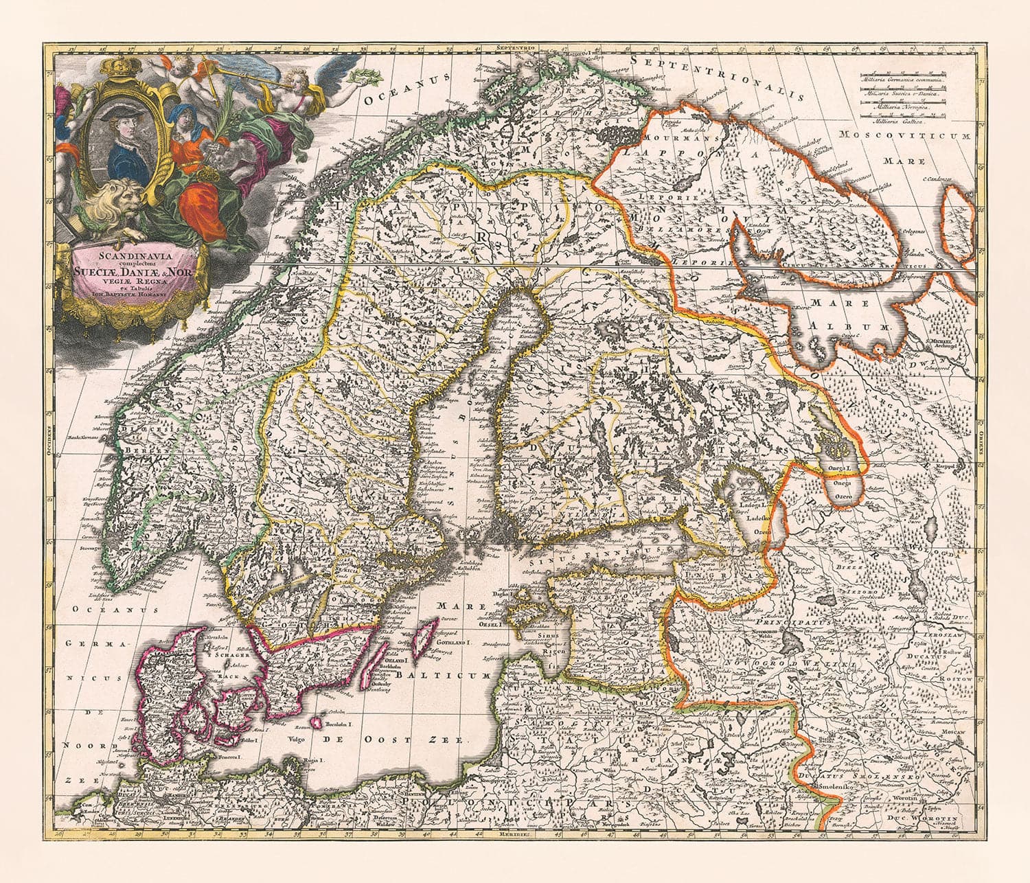 Alte Karte von Skandinavien, 1720 von Johann Baptist Homann: Nordisch, Baltisch, Dänemark, Schweden, Finnland, Russland, Estland, Lettland, Litauen