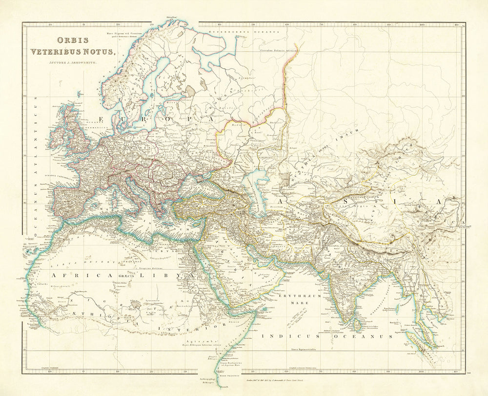 Eine wunderschöne Karte der Alten Welt, die ursprünglich 1822 von wahrscheinlich dem begehrtesten Kartenmacher des 19. Jahrhunderts, John Arrowsmith, veröffentlicht wurde.
