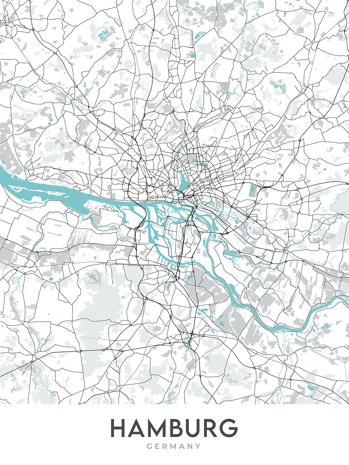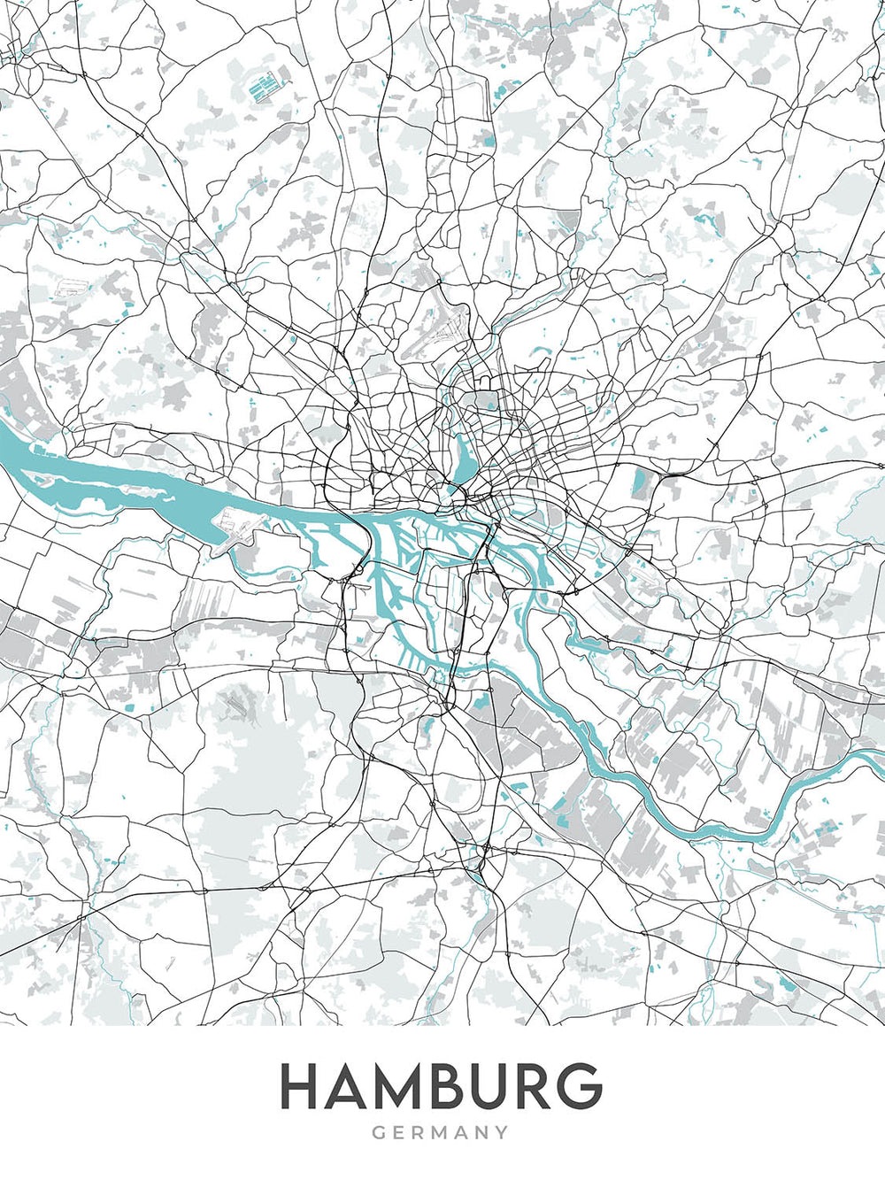 Diese Karte von Hamburg, Deutschland, ist eine moderne, detaillierte Straßenkarte ohne Beschriftung. Der Schwerpunkt liegt auf der Innenstadt und den umliegenden Stadtteilen und bietet einen aktuellen und optisch ansprechenden Überblick über diese pulsierende Stadt. Die Karte deckt ein breites Spektrum an Stadtteilen ab, darunter die historische Altstadt, die trendige Neustadt, das lebhafte St. Pauli, die multikulturelle Sternschanze, das charmante Altona, das familienfreundliche Eimsbüttel, das wohlhabende Rotherbaum, das elegante Harvestehude, das friedliche Eppendorf, und das schöne Winterhude.