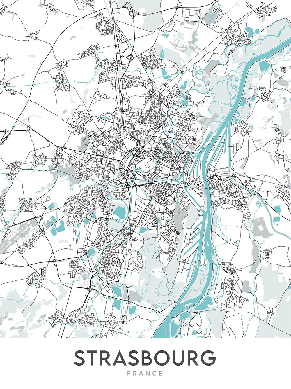 Diese Karte von Straßburg ist ein Muss für jeden, der die Stadt liebt oder sich für Kartografie und Design interessiert. Es ist ein wunderschönes und informatives Kunstwerk, an dem sich alle erfreuen werden, die es sehen.