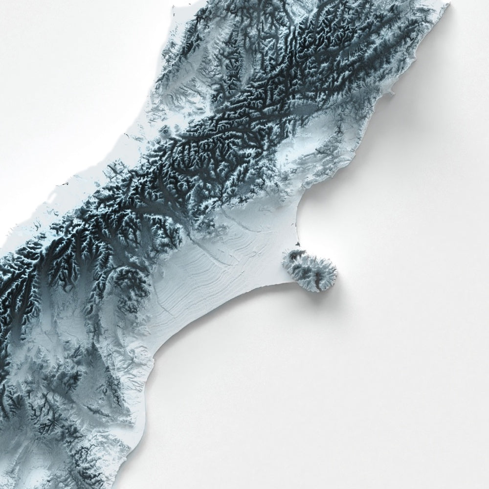 Our shaded relief prints use ultra high resolution topographic data and a secret 3D rendering process to create the illusion of raised terrain — like the mountains are about to lift right off the page. No labels, no borders, no distractions. Just the raw shape of the land, brought to life in a clean, modern style.