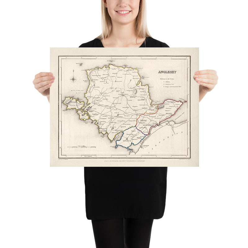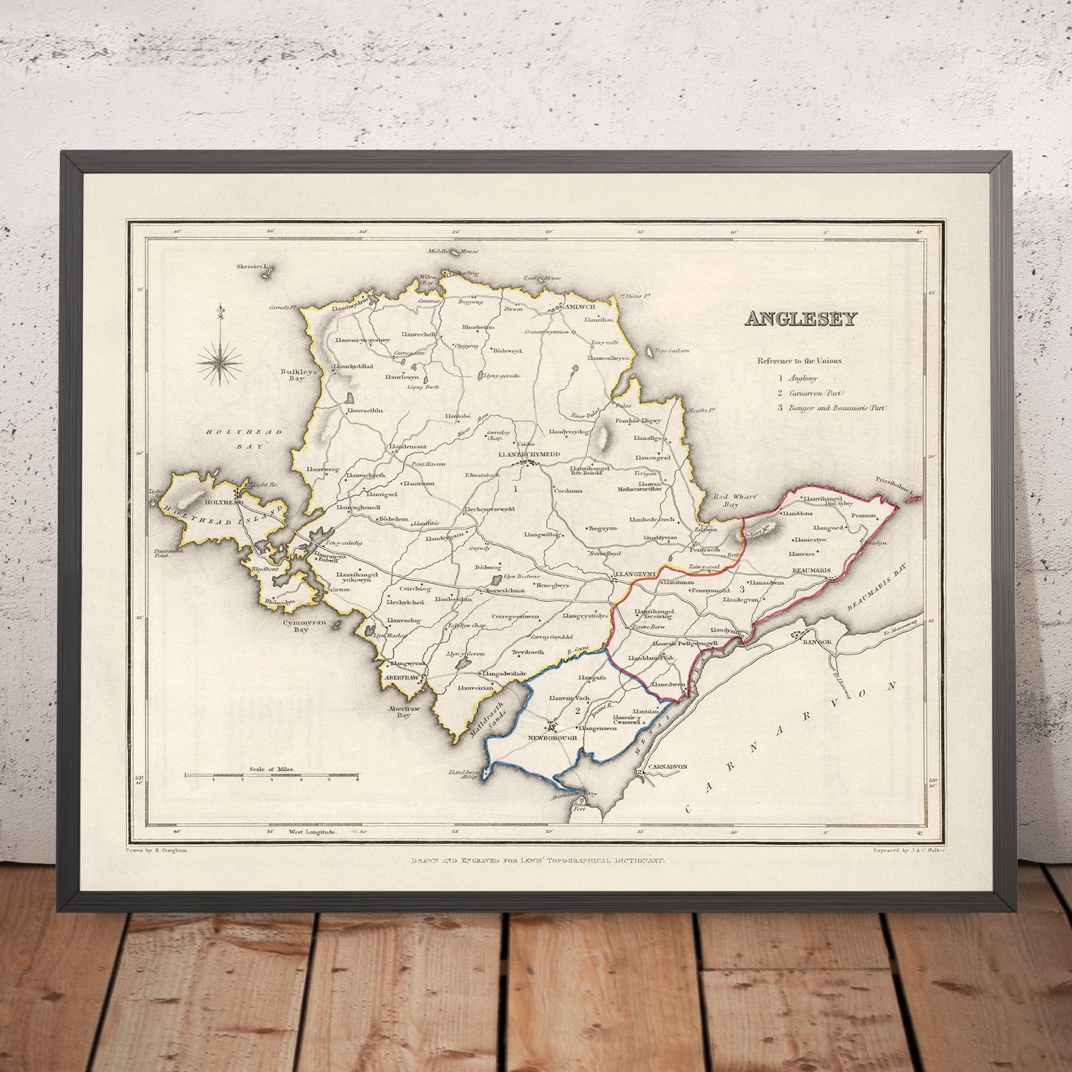 Old Map of Anglesey, Wales by Lewis, 1844: Holyhead, Llangefni, Amlwch, Menai Bridge, Beaumaris