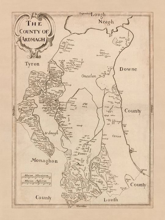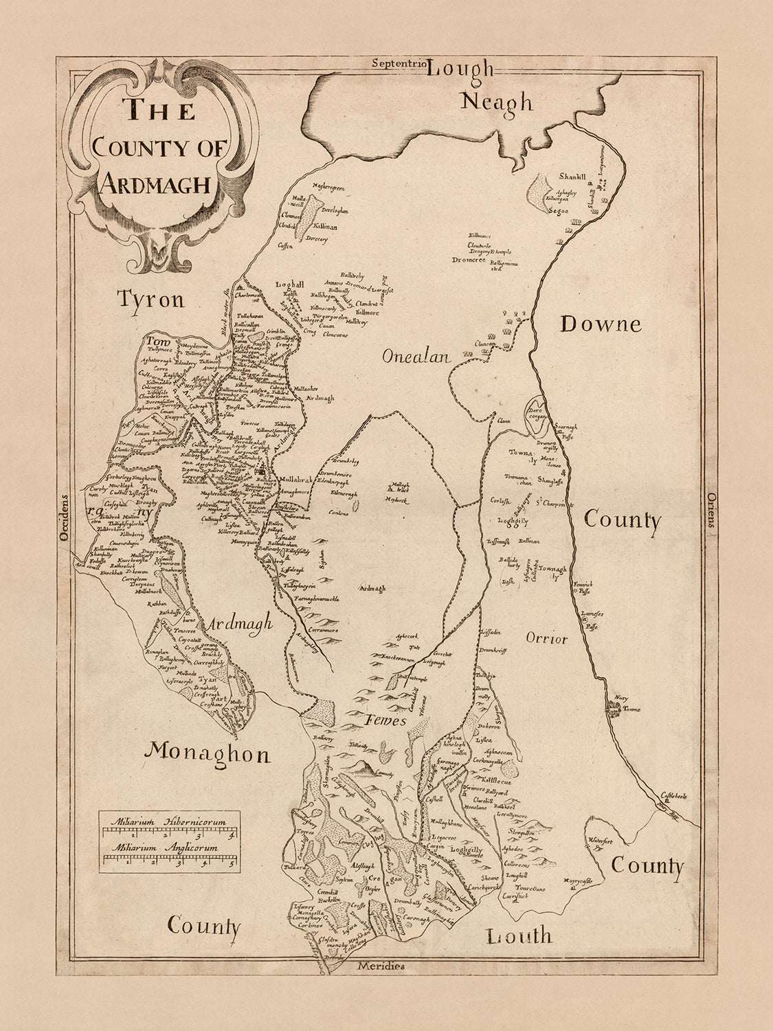Alte Karte des County Armagh von Petty, 1685: Armagh, Lough Neagh, Charlemont, Portadown, Lurgan