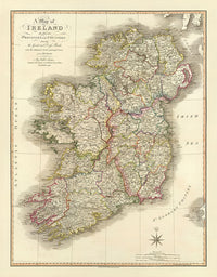 Dies ist eine der schönsten und seltensten alten Karten von Irland, die alle ursprünglichen Grafschaften und Provinzen zeigt.
