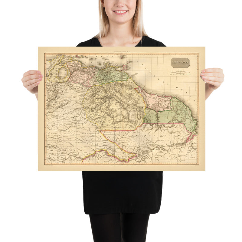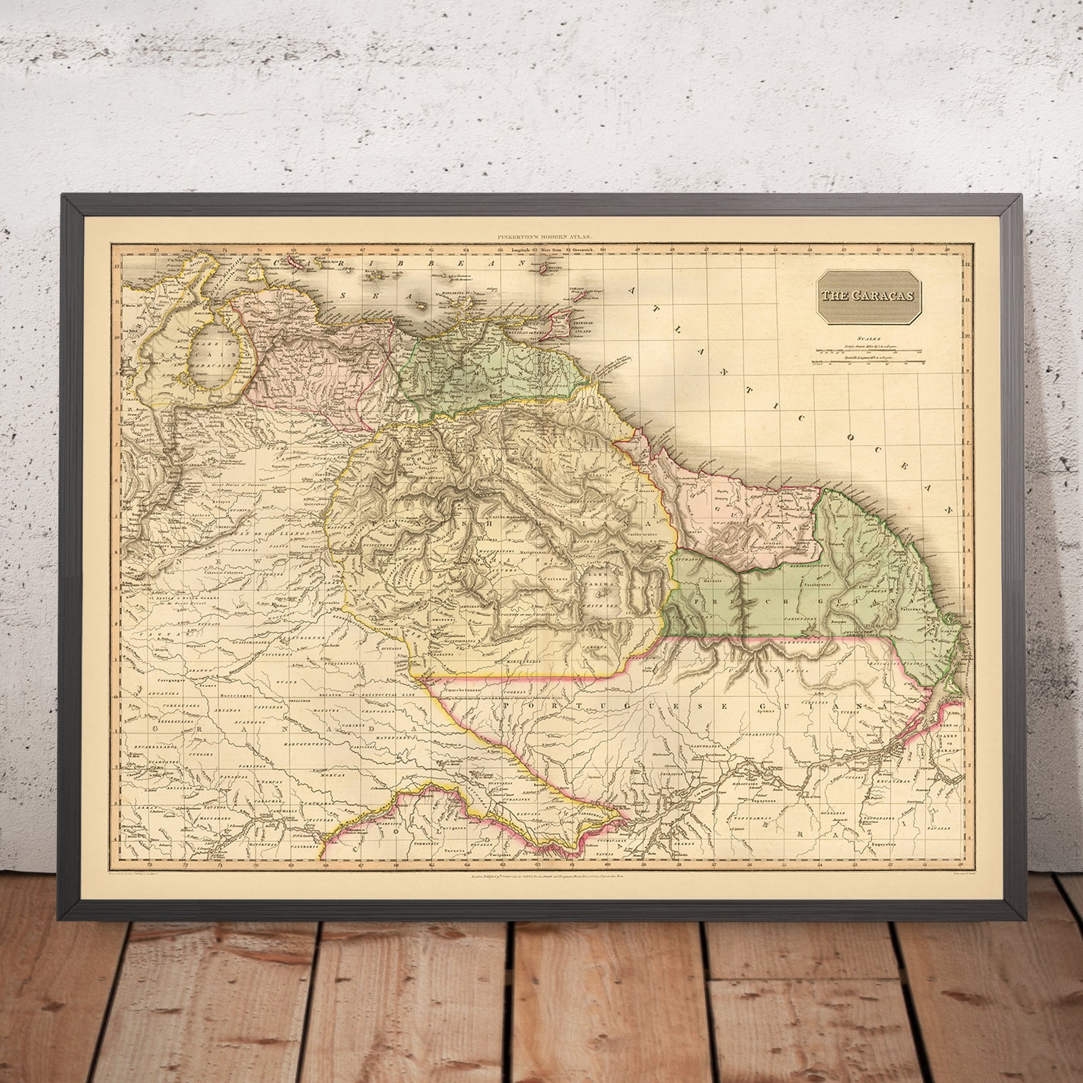 Old Map of Venezuela and Colombia by Pinkerton, 1815: Caracas, Bogotá, Orinoco, Amazon, Maracaibo