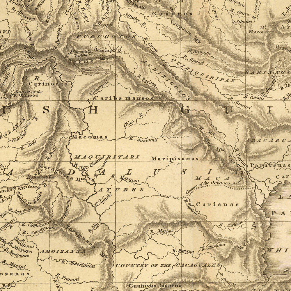 The Caracas, issued by John Pinkerton in 1815, is a landmark statement of South America at the very moment Venezuela first emerged on the world stage. Among the earliest maps to register an independent Venezuela, it frames the upheaval of the revolutionary era within a finely observed geography that stretches across Venezuela and Colombia and deep into Brazil, following the Amazon and its tributaries far into the interior. Recognized in its day as one of the finest regional treatments to appear in an English atlas, it pairs political insight with scientific restraint. Borders are cleanly differentiated, terrain is richly articulated, and major waterways are traced with an authority that still feels fresh, all while an elegant cartouche confers a sense of classical dignity.