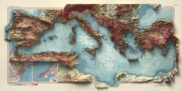 - Einzigartige Perspektive durch die Kartenprojektion, die das Mittelmeer und die umliegenden Länder hervorhebt.