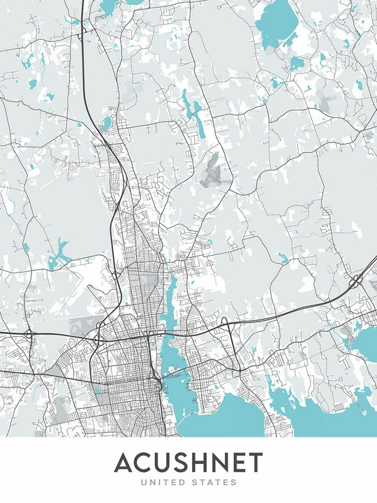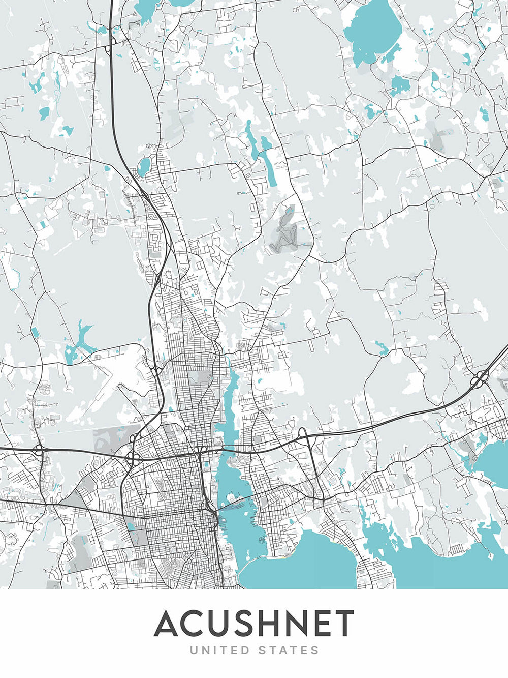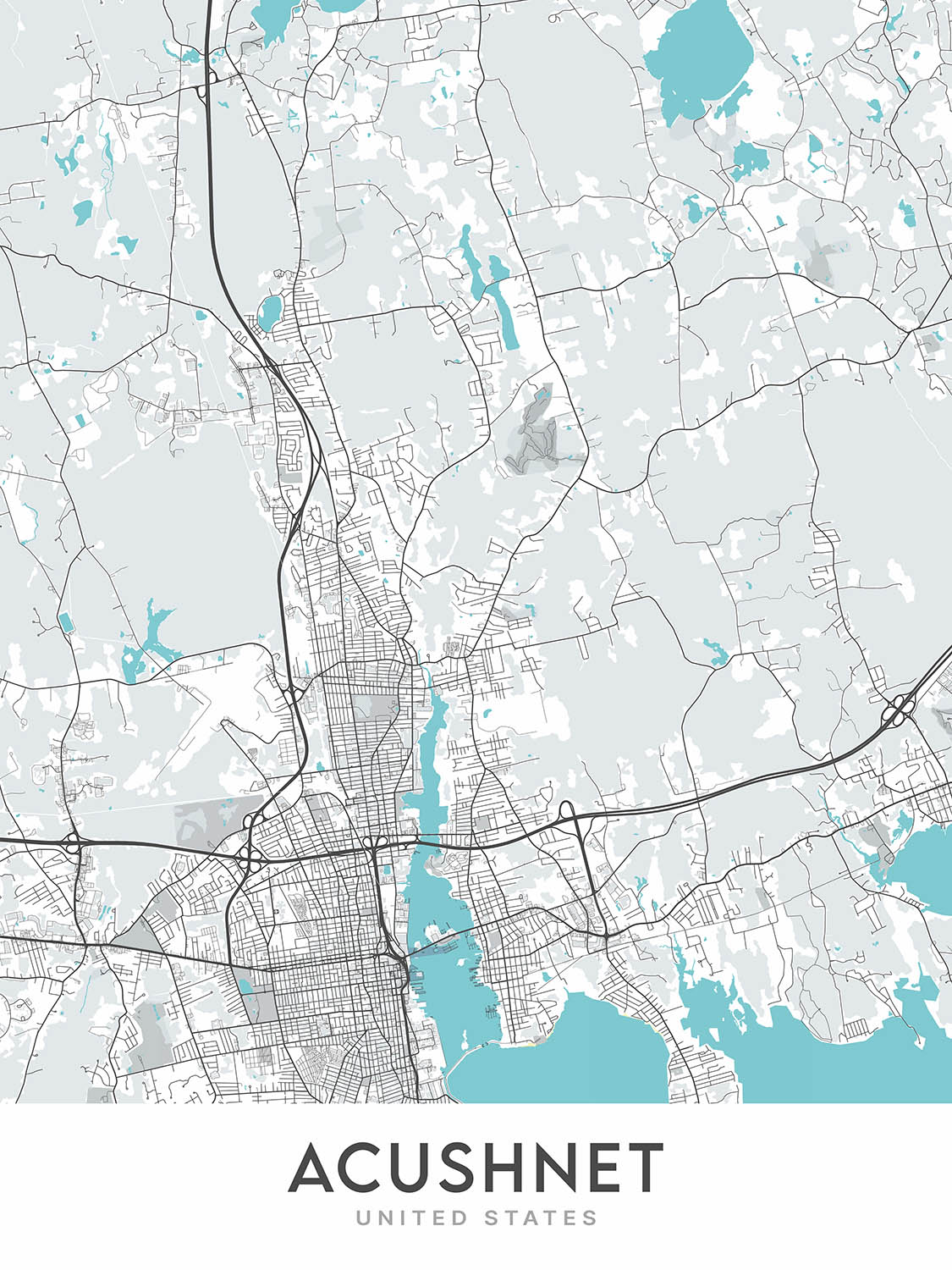 El mapa de Acushnet es una obra de arte cartográfica moderna que se centra en la ciudad de Acushnet en Massachusetts. Este mapa es un callejero detallado, centrado en la ciudad moderna. El mapa cubre un área grande, incluido el centro de la ciudad y los suburbios circundantes. Es un gran tema de conversación que añadirá un toque de estilo moderno a cualquier hogar u oficina.